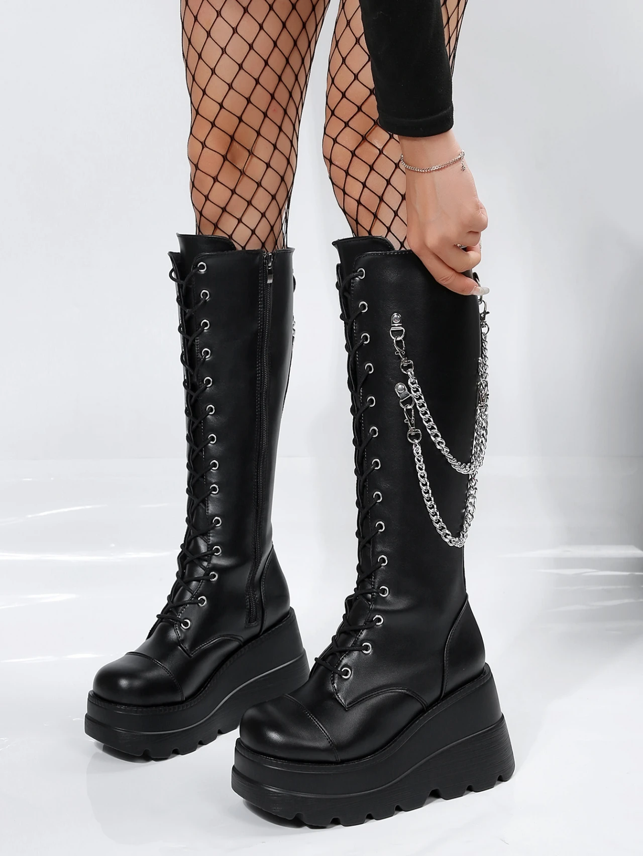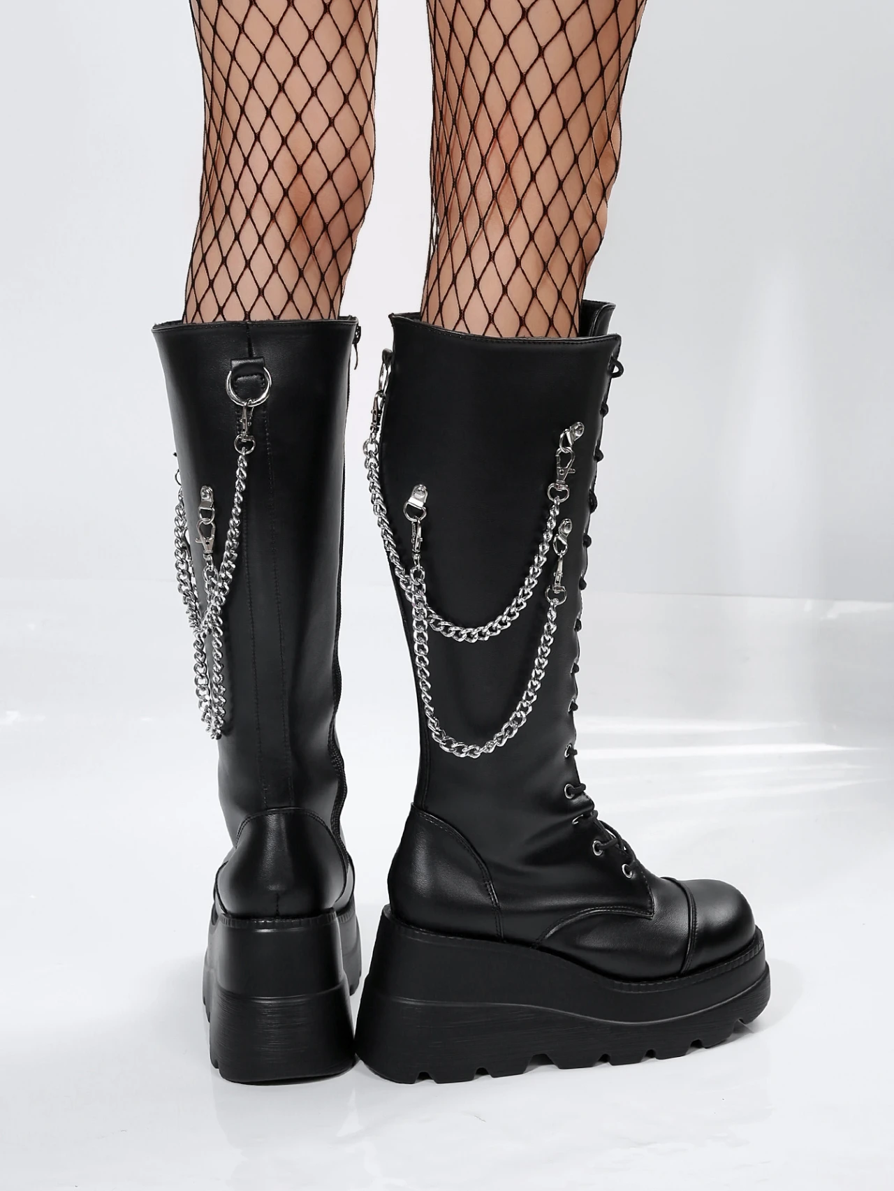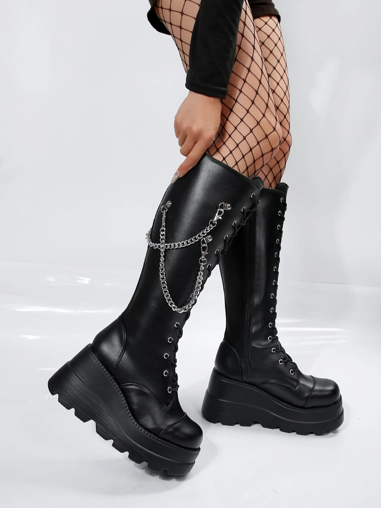 Alt Punk Buckle Street Platform Wedge High Heel Boots