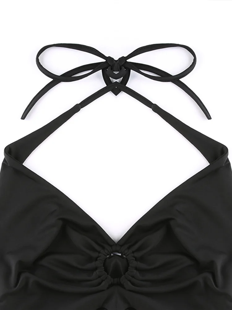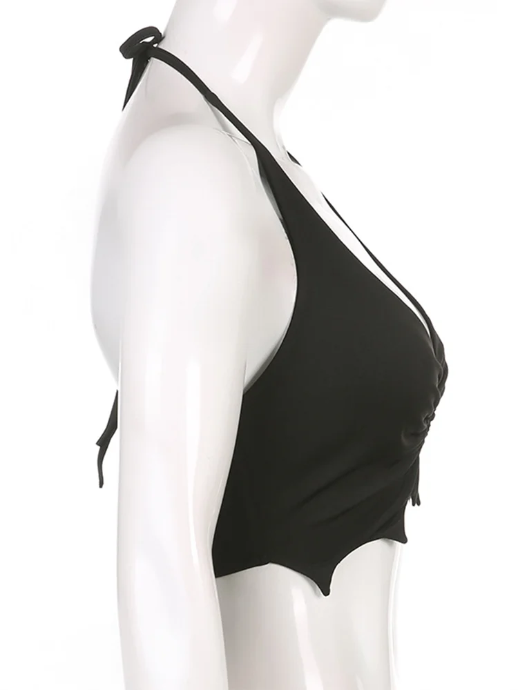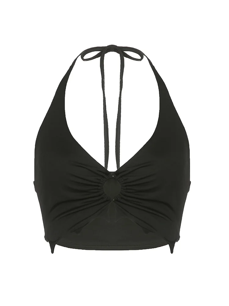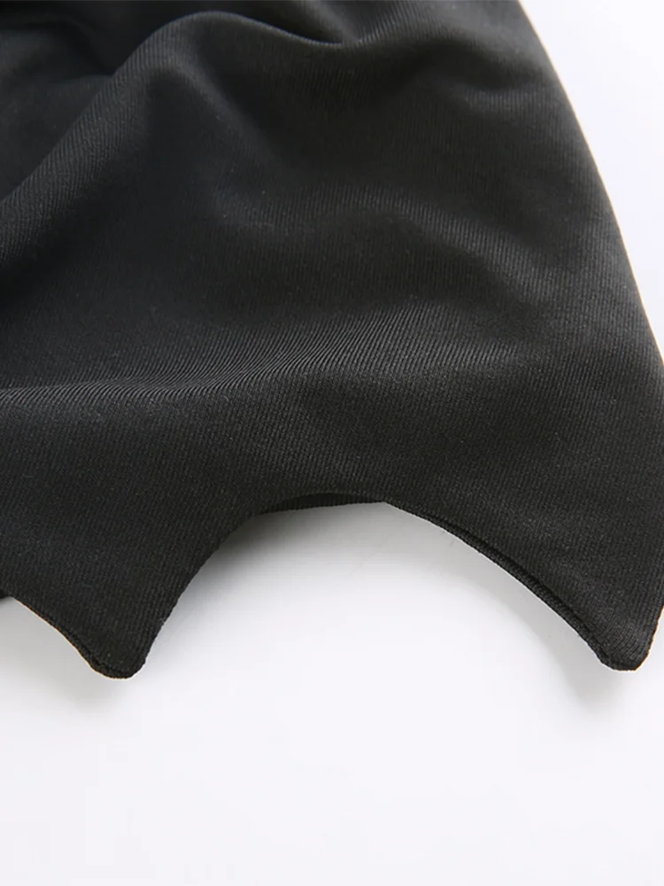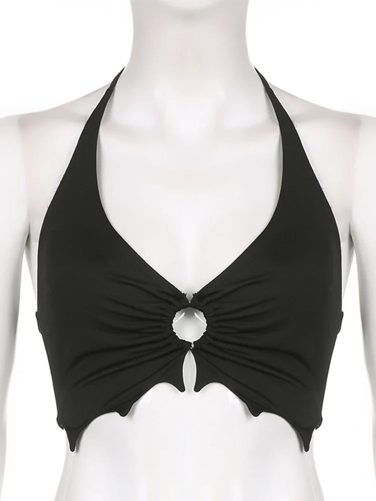 Introducing the Yangelo Mall Goth Bat Shape Black Camis, a vintage aesthetic camisole designed for women who embrace their unique style. Made from a blend of cotton and polyester, this camisole offers a slight stretch and is crafted with a solid pattern, perfect for those who love the gothic fashion. With its regular clothing length, it is suitable for the summer season and features a backless design with spaghetti straps for a sexy and alluring look. The camisole is adorned with holes for added decoration and is a versatile piece that can be worn for parties or daily wear.
