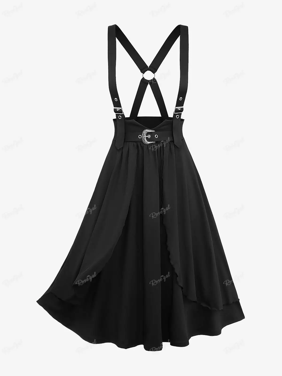 Plus Size Grommets Buckle Crisscross Ruffles Layered Suspender Skirt